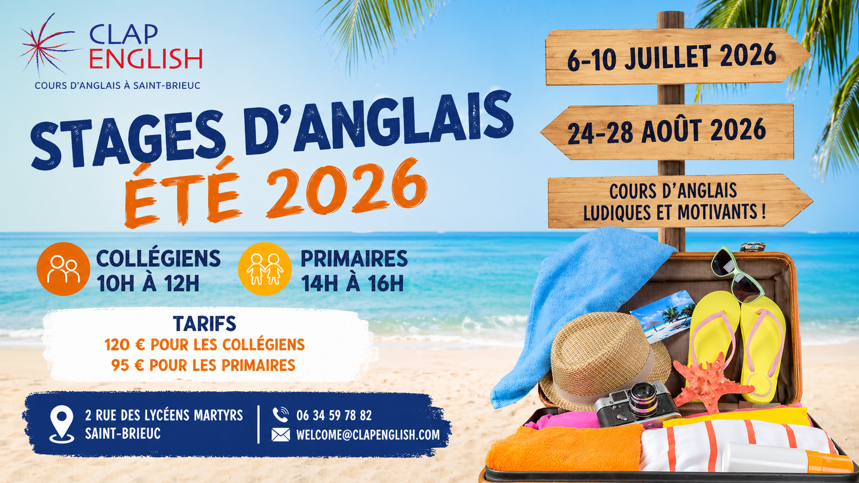 Pendant les vacances de printemps 2026, Clap English organise des stages d’anglais ludiques et immersifs à Saint-Brieuc, du 13 au 17 …